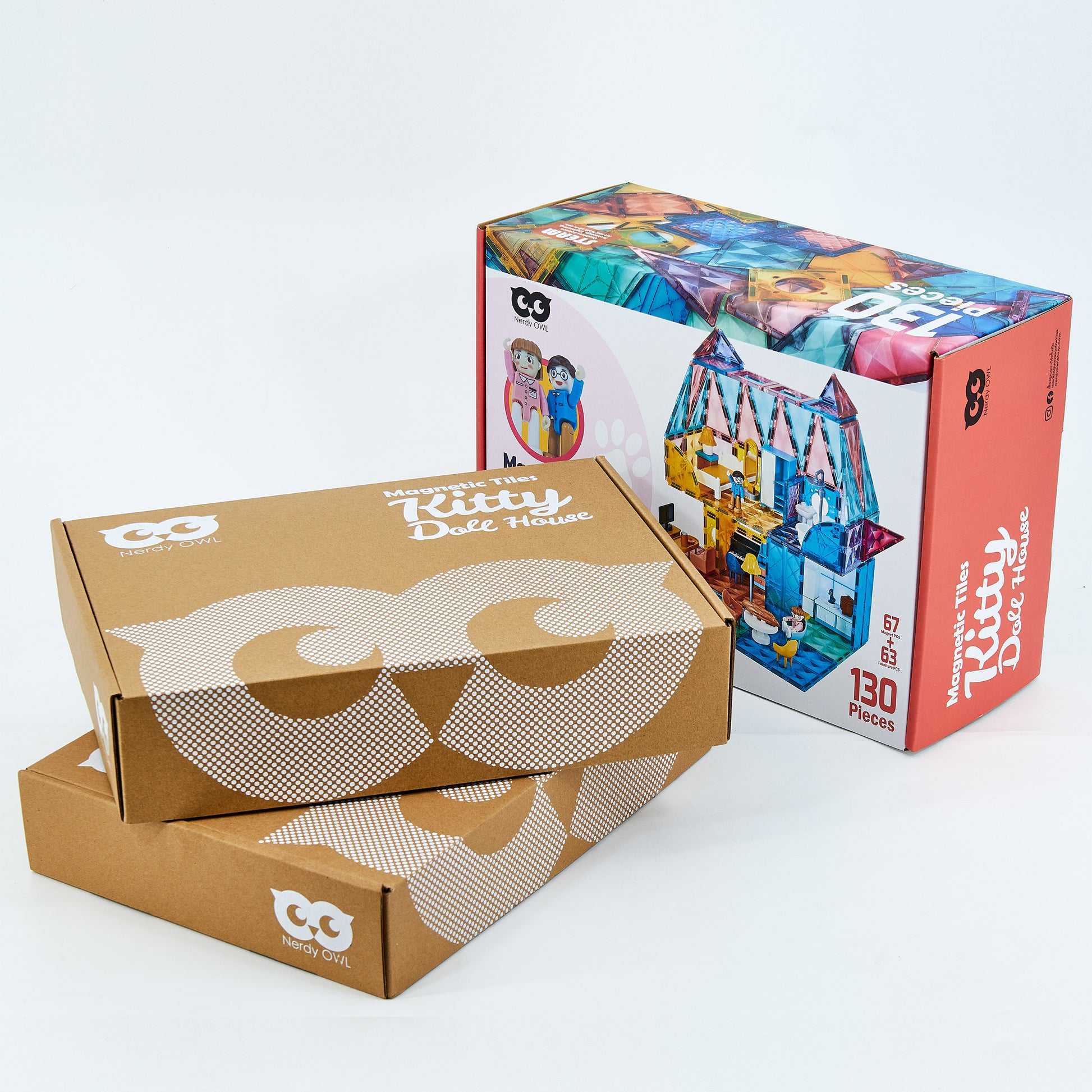 Nerdy Owl Magnetic Tiles Kitty Dollhouse 130 ชิ้น ตัวต่อแม่เหล็กบ้านตุ๊กตาแมวเหมียว
